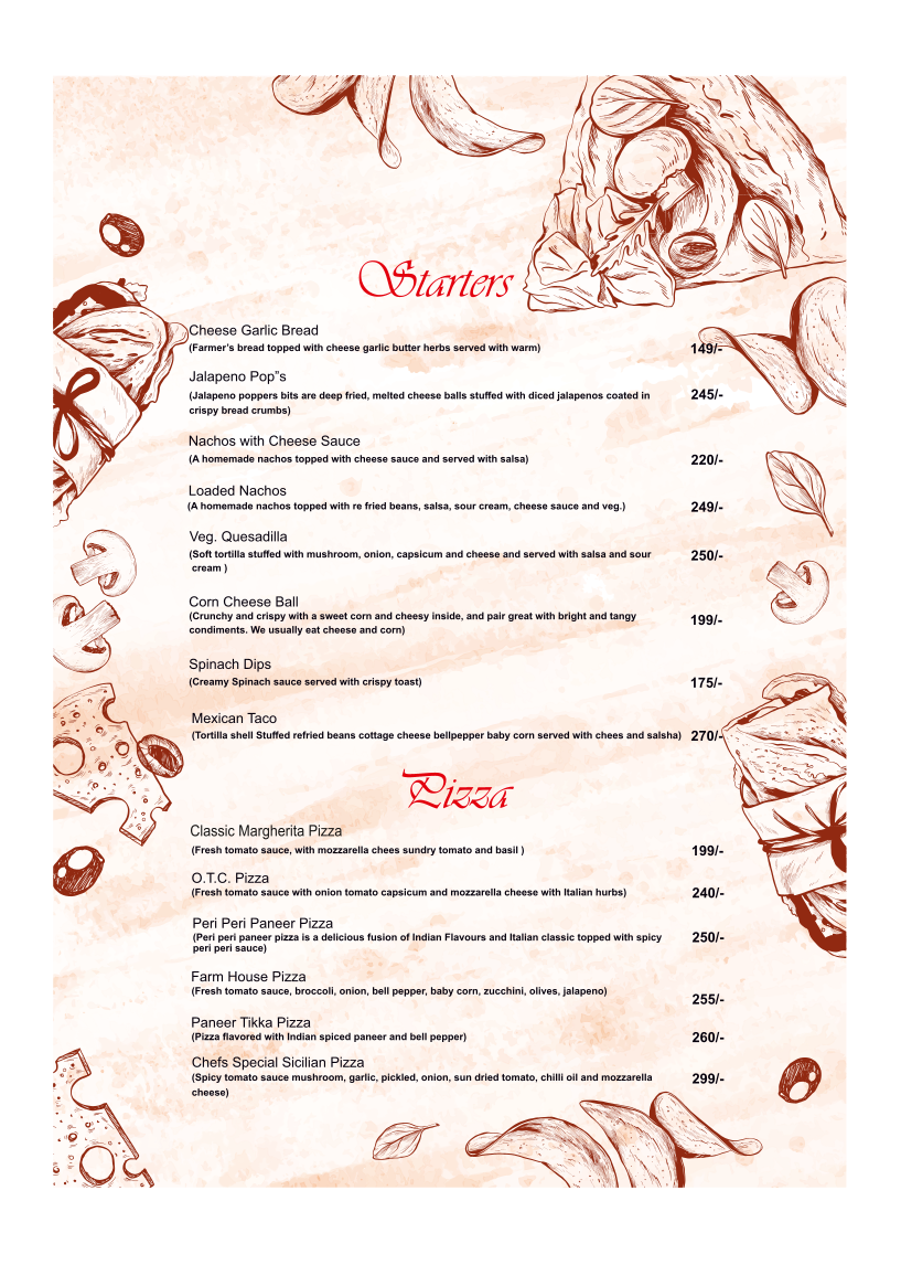 Are you a pizza lover? The Classic Margherita Pizza is a timeless choice with its rich tomato sauce and gooey mozzarella cheese that melts in your mouth. Or, take a flavorful adventure with the Peri Peri Paneer Pizza, a daring fusion that combines spicy Indian flavors with Italian tradition. And let's not forget the Veg Cheese Burger; every bite brings together a wholesome veggie patty layered with cheese, crisp lettuce, and juicy tomatoes in a soft bun—comfort food at its finest!